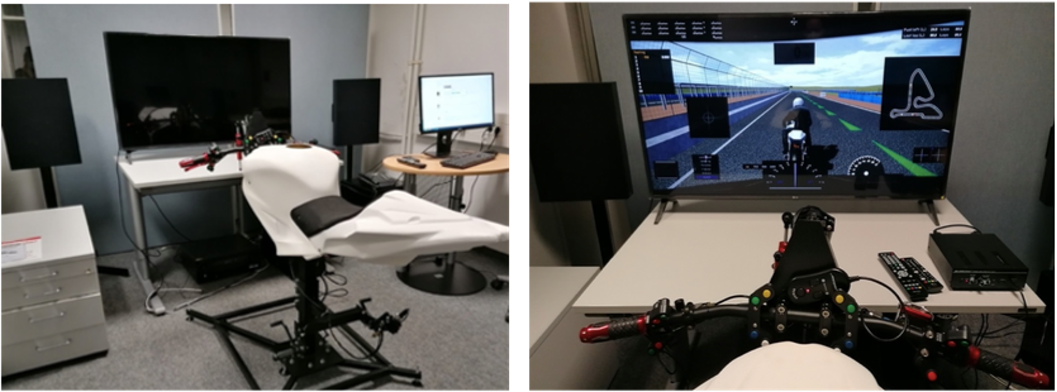 Der Motorradsimulator wurde mit Hilfe finanzieller Mittel des Hochschulstrukturpaktes HP2020 aufgebaut. Er wird überwiegend in der Lehre eingesetzt (Gestaltungsprojekte, Arbeits – und Produktgestaltung). Da gute Lehre und gute Forschung Hand in Hand gehen, haben wir Kontakt aufgenommen mit der Forschungsabteilung von Motorradherstellenden. Außerdem bereiten wir Anträge auf Forschungsmittel aus dem Rhein-Main Universitäten Initiativfond vor. Diese dienen primär dem Anschub von Forschungsgroßprojekten z.B. bei der DFG. Die Hand-und Fußkontrollen des Simulators sowie die dynamische Sitzbank wurden von unserem Entwickler Allan Beaton von IASystems in England entwickelt und aufgebaut (http://iasystems.tk/).